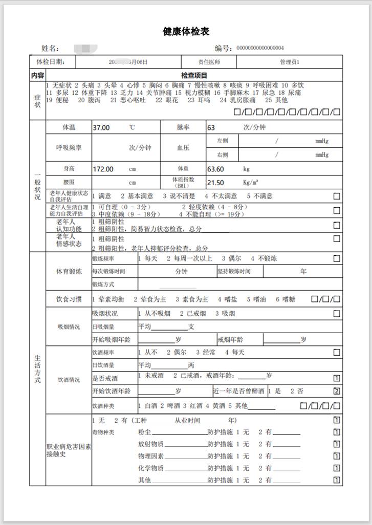 支持智能總檢評(píng)價(jià)、批量打印健康體檢報(bào)告,支持職業(yè)病/學(xué)生體檢,支持微信查看電子健康體檢報(bào)告